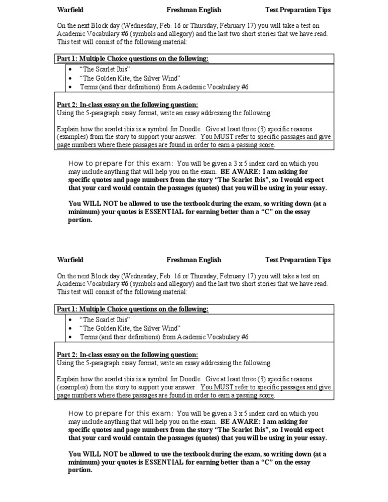 These differences will be examined, and the relationships between the two characters will be analyzed in the context of distinctive assessments of success, scarlet ibis essay. The disabilities of the younger brother do not prevent him from admiring the world, while the elder brother is inclined to show more pride, and these differences form the basis of the story. Being born with physical defects and poor coordination, Doodle was distinguished by a thirst for life and interest in the world around him. Although the younger brother had such severe physical disabilities that scarlet ibis essay his parents were ready for his death, he did not want to put up with the fate of a disabled person.
